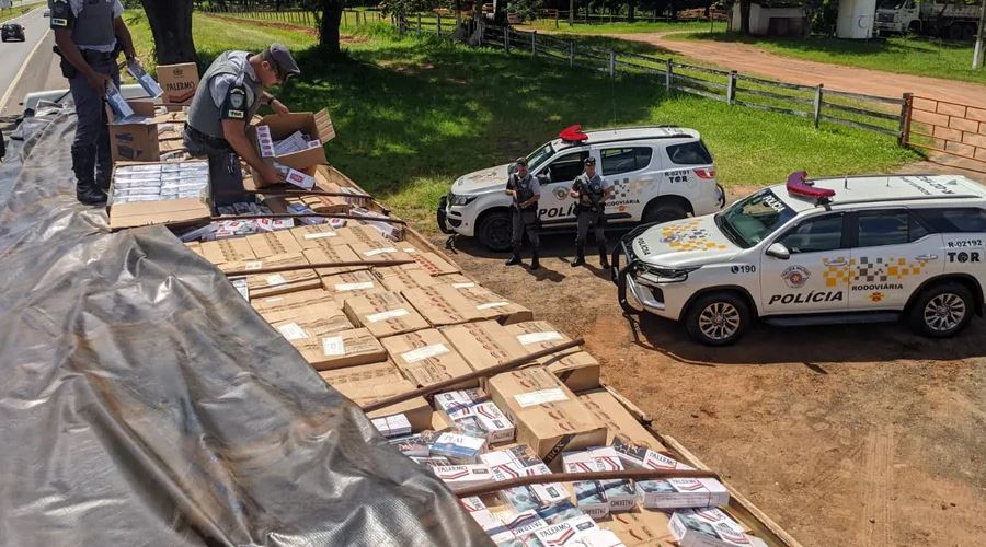 Motorista de carreta é flagrado na SP-294 com 400 mil maços de cigarros contrabandeados
