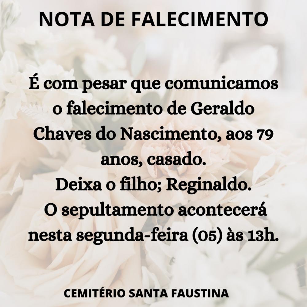 Nota de Falecimento: Geraldo Chaves do Nascimento, 79 anos