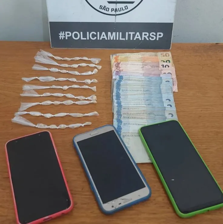 Durante patrulhamento, mulher é surpreendida com pedras de crack; operação levou à prisão de um homem e apreensão de entorpecentes e dinheiro.