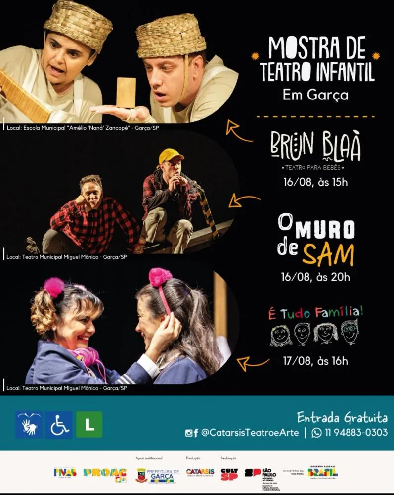 Garça recebe programação gratuita de espetáculos para bebês, crianças e jovens
