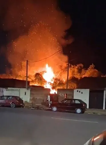 Chamas começaram em uma área de mata com bambuzal na noite de sexta-feira (10); bombeiros conseguiram controlar o incêndio e evitar que o fogo se espalhasse para as residências.
