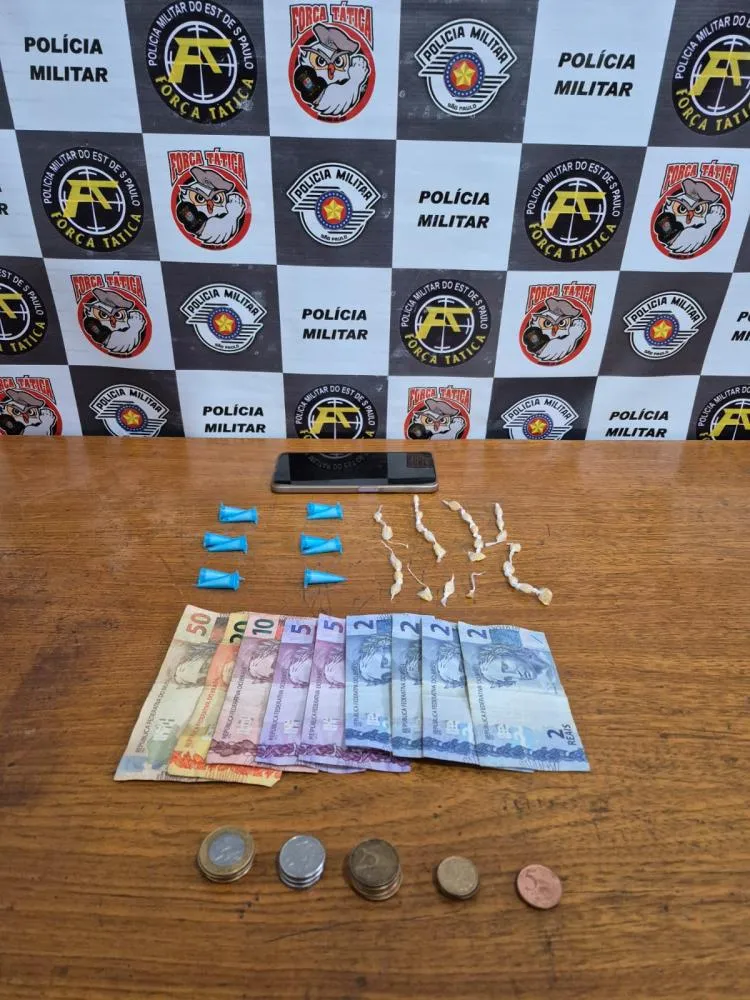 Mulher é flagrada com porções de cocaína, crack e dinheiro durante ação da Força Tática no Jardim São Lucas, em Garça.