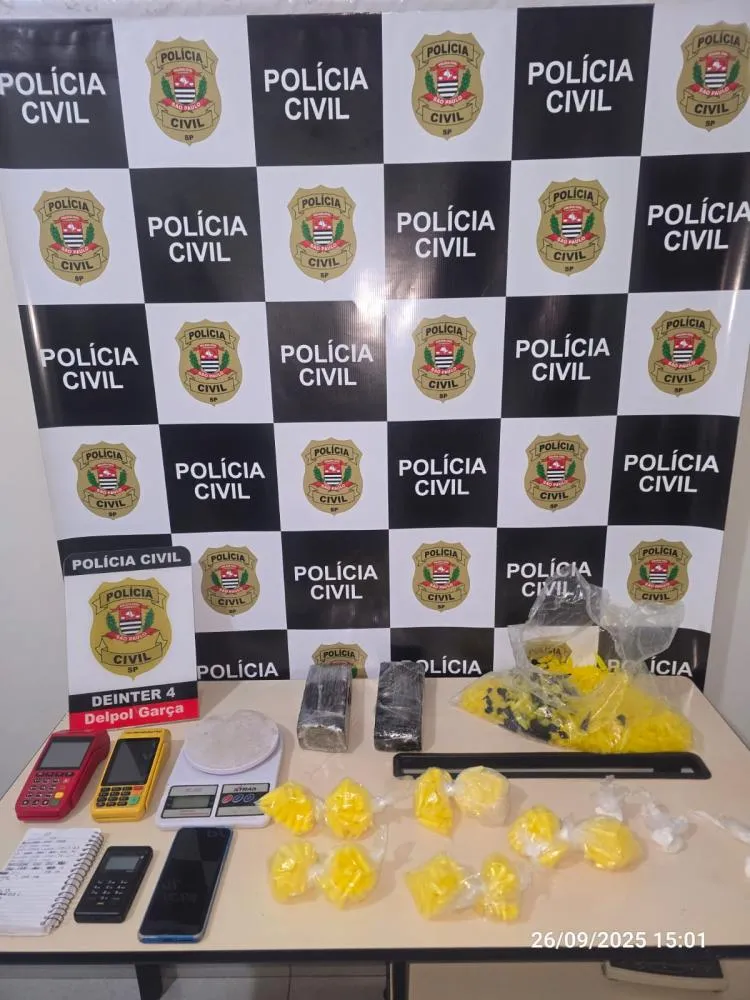 Com mais de 1,4 kg de entorpecentes apreendidos, Polícia Civil prende rapaz de 23 anos no serviço em Garça