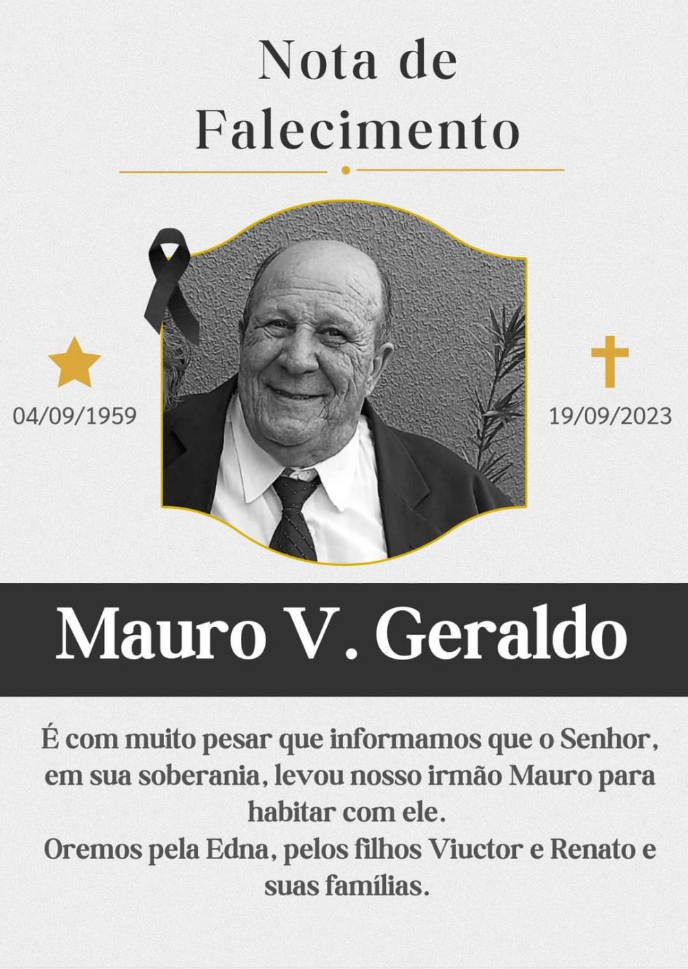NOME DO FALECIDO: MAURO VALENTIM GERALDO