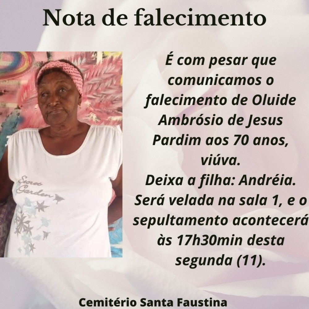Nota de Falecimento: Oluide Ambrósio de Jesus Pardim, 70 anos