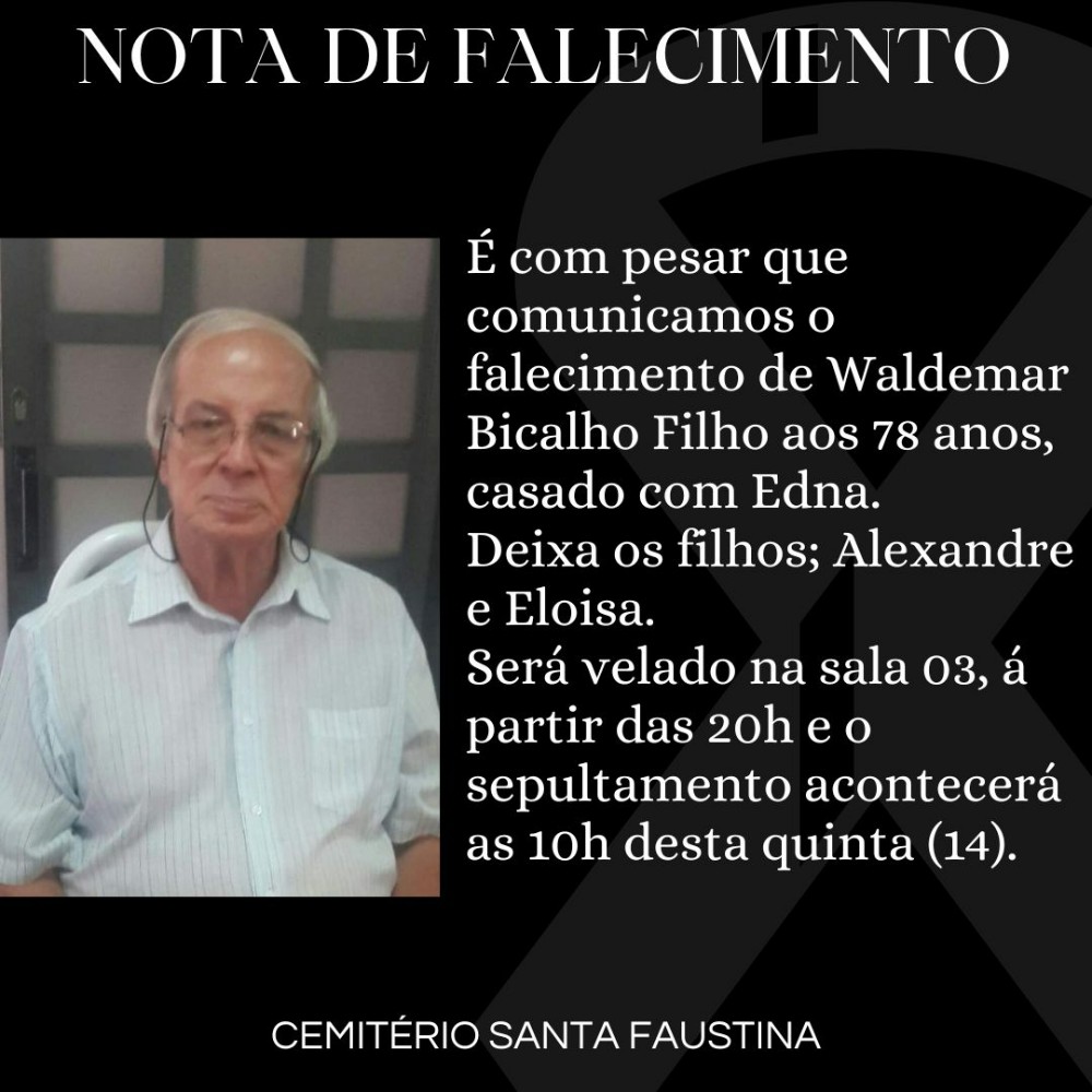 Nota de Falecimento: Waldemar Bicalho Filho, 78 anos