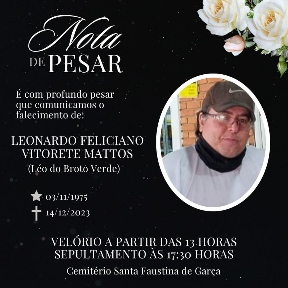 Nota de Falecimento: Leonardo Feliciano Vitorete Mattos, 48 anos