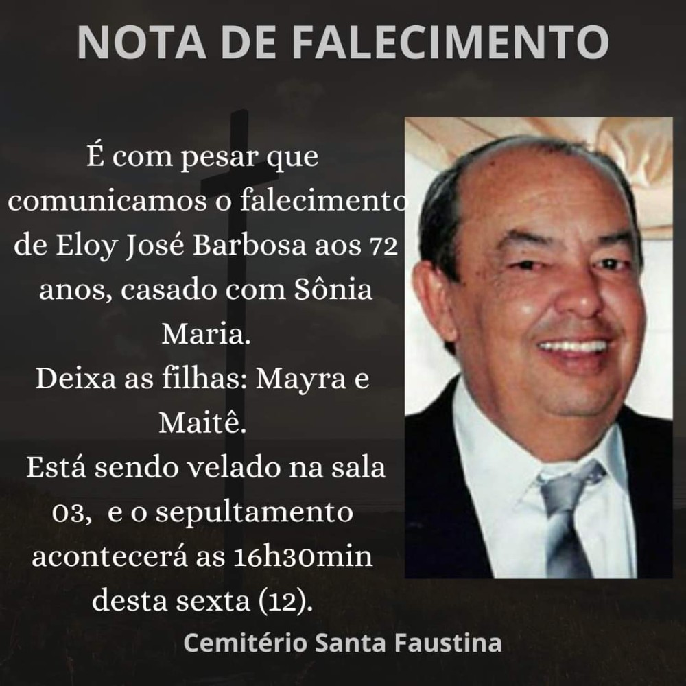 Nota de Falecimento: Eloy José Barbosa, 72 anos