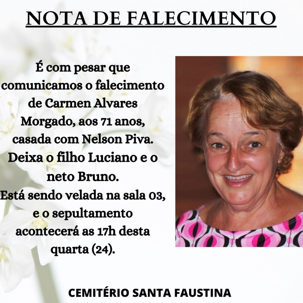 Nota de Falecimento: Carmen Alvares Morgado, 71 anos