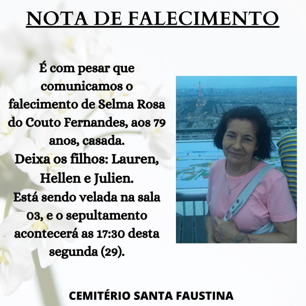 NOTA DE FALECIMENTO - Selma Rosa do Couto Fernandes, 79 anos