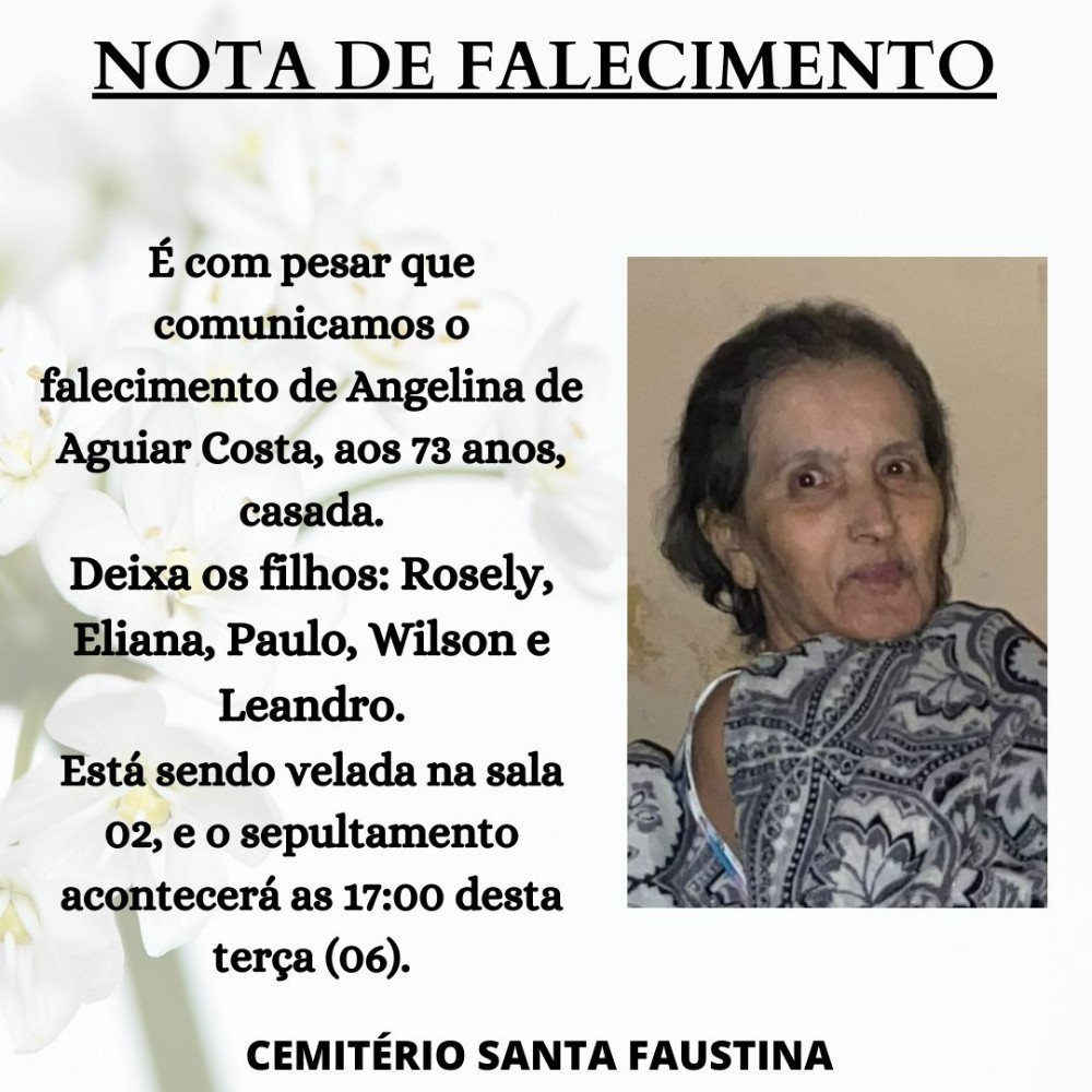 Nota de Falecimento: Angelina de Aguiar Costa, 73 anos