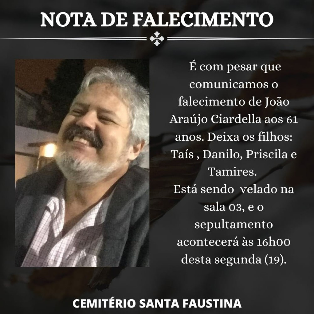Nota de Falecimento: João Araújo Ciardella, 61 anos