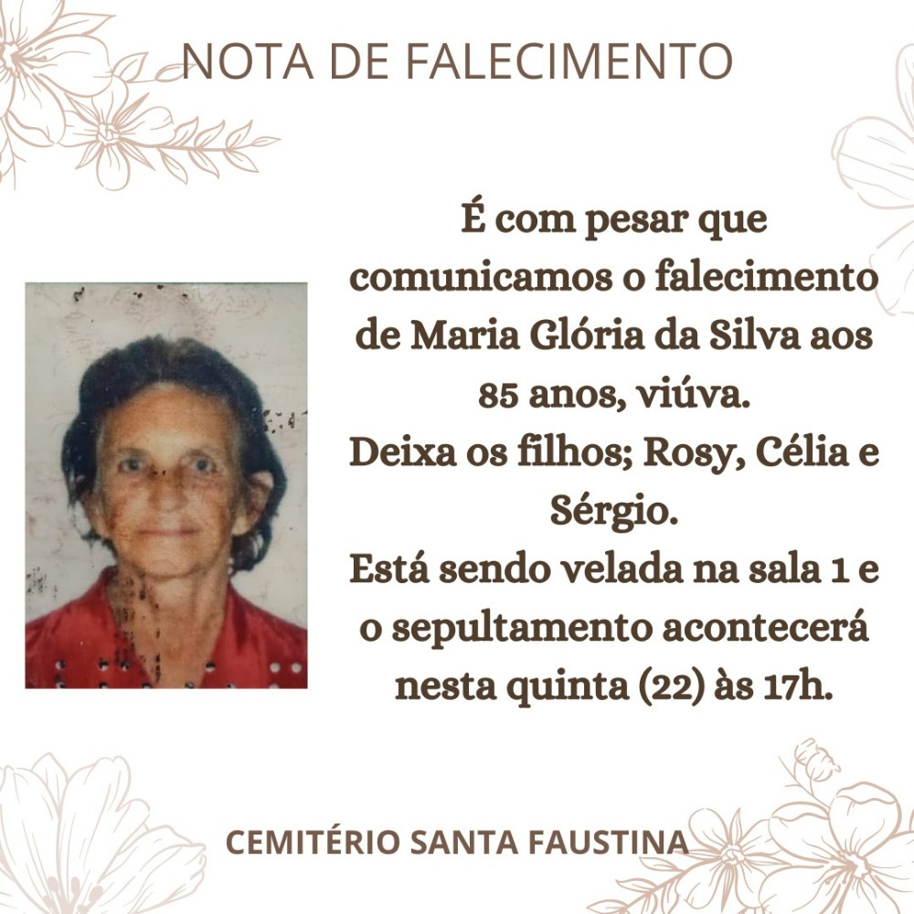 Nota de Falecimento: Maria Glória da Silva, 85 anos