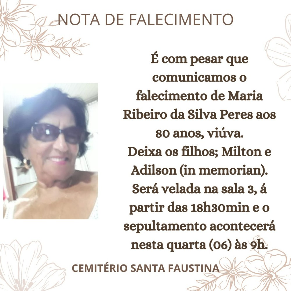 Nota de Falecimento: Maria Ribeiro da Silva Peres, 80 anos