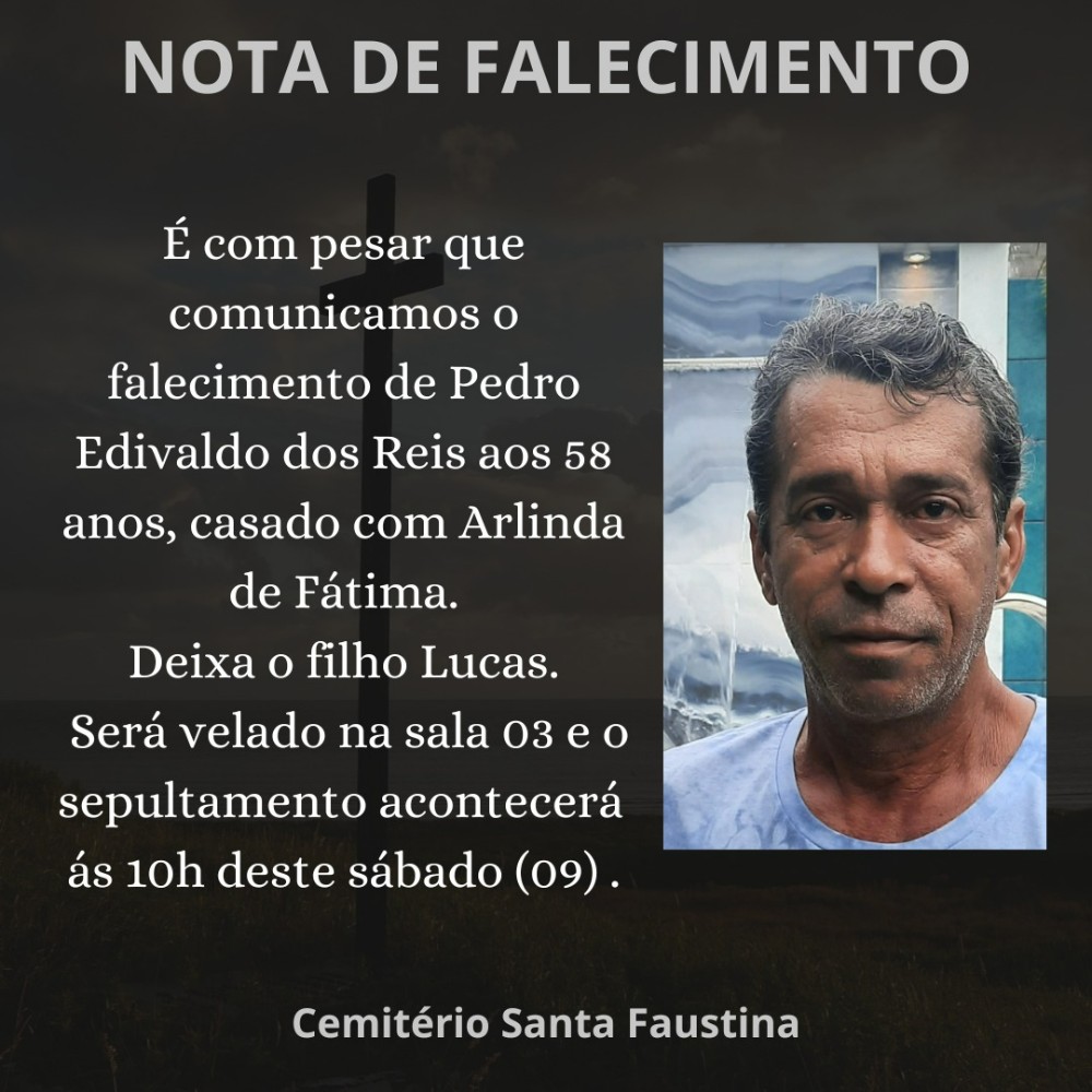 Nota de Falecimento: Pedro Edivaldo dos Reis, 58 anos