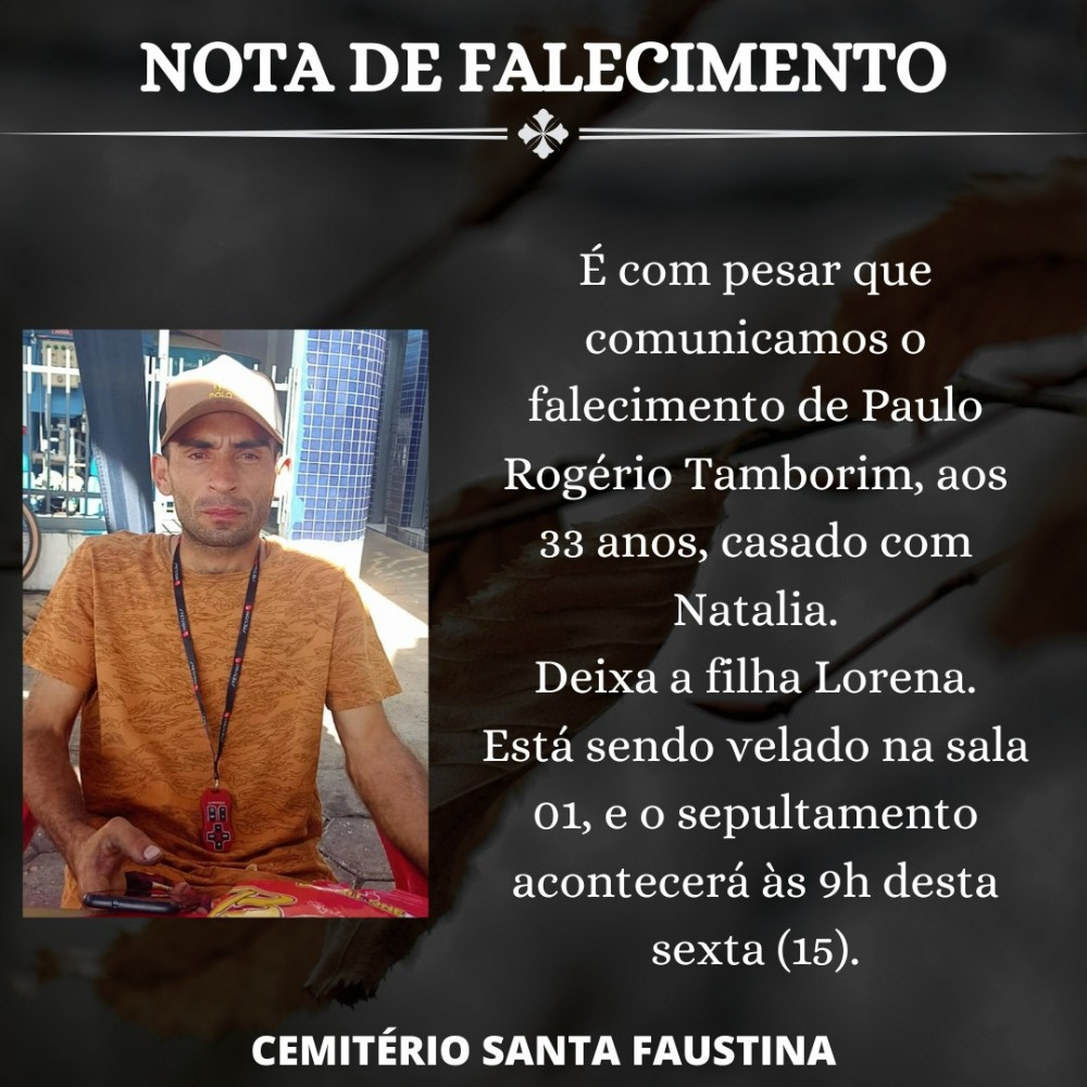 Nota de Falecimento: Paulo Rogério Tamborim, 33 anos