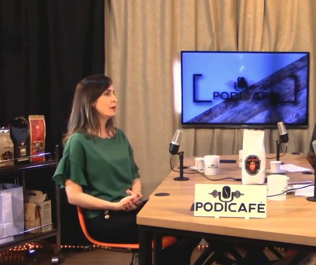 Mara Peres foi a primeira entrevistada no Podicafé, comandado por Fábio Dias e Mari Peres