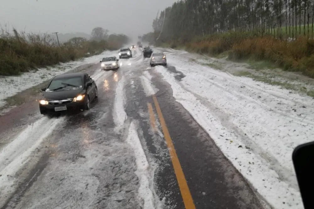 Granizo assusta moradores e cobre ruas com gelo no interior