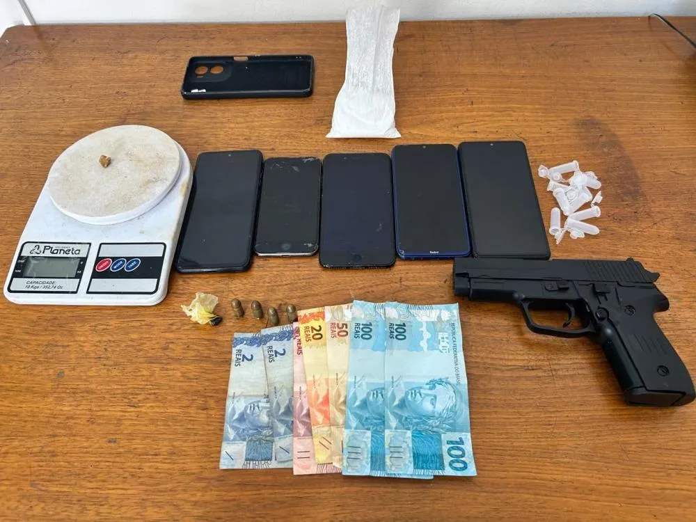 Durante a busca pessoal, foi encontrada uma pedra aparentando ser crack, além de R$ 286,00 em dinheiro e três celulares