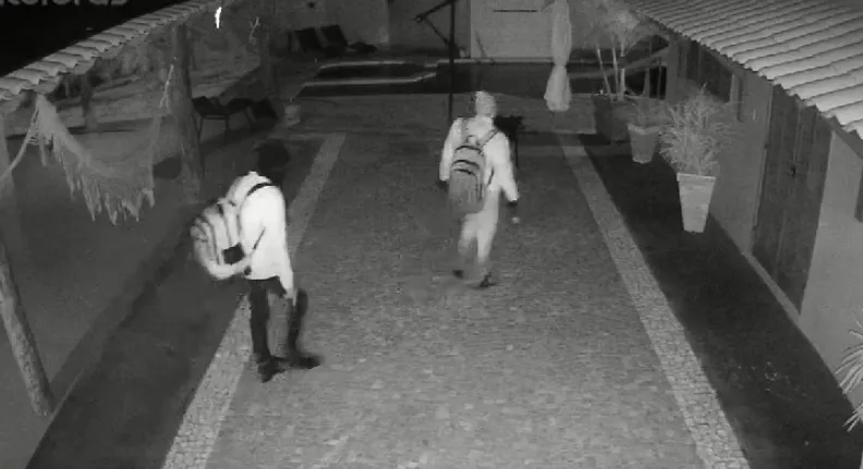 Câmaras flagraram a chegada dos criminosos que ficaram mais de uma hora dentro da residência das vítimas.