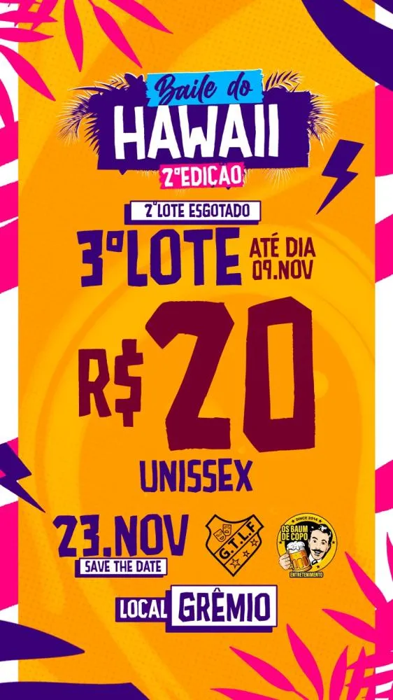 Kymania, Dj Fexer e Dj Juan Souza são as atrações confirmadas para o Baile do Hawaii no Grêmio de Garça